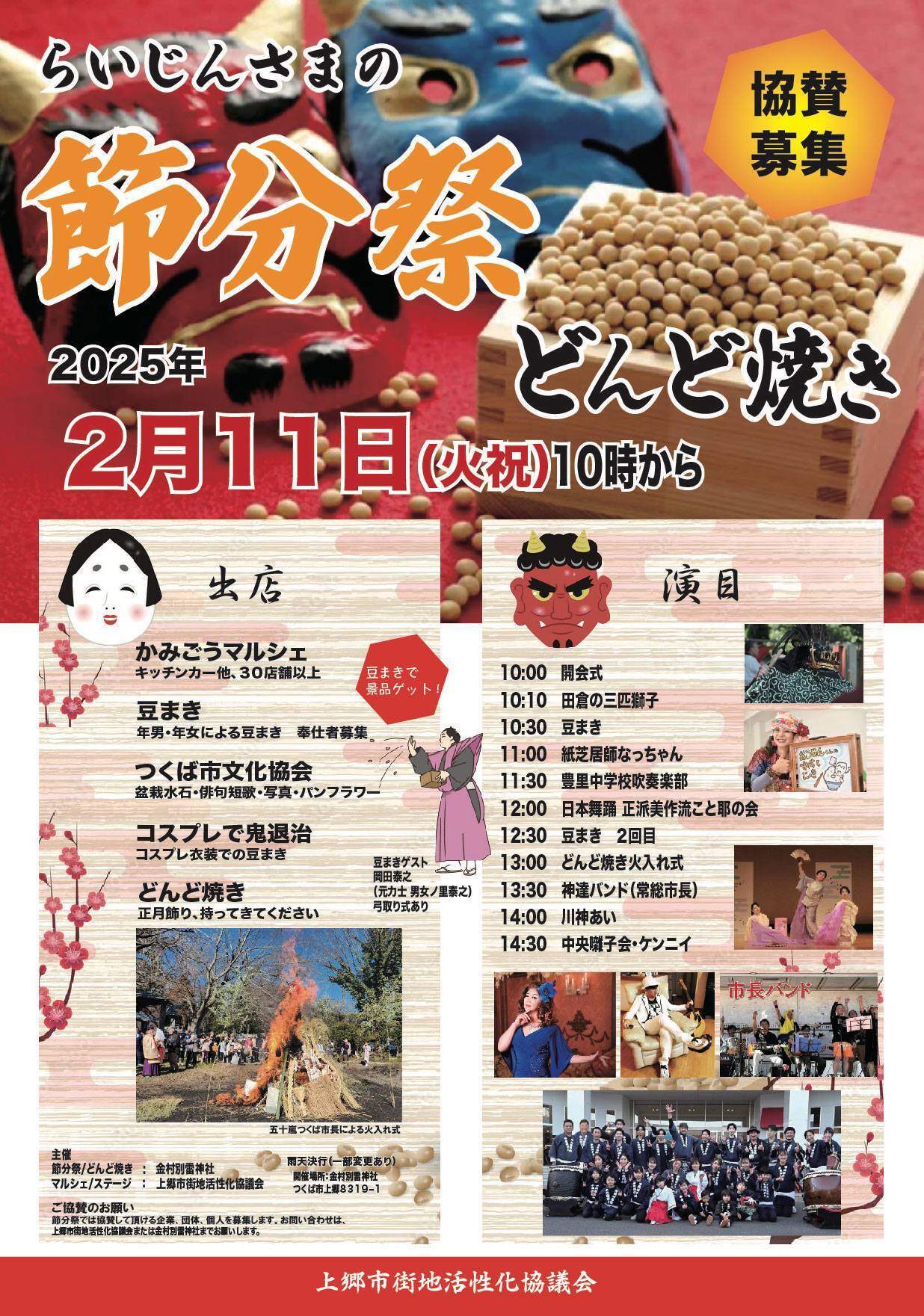 2回の豆まきや多様なステージイベント企画、30店舗を越えるキッチンカーや出店、つくば市文化協会展示等などが賑わい、過去最高の人出でした。